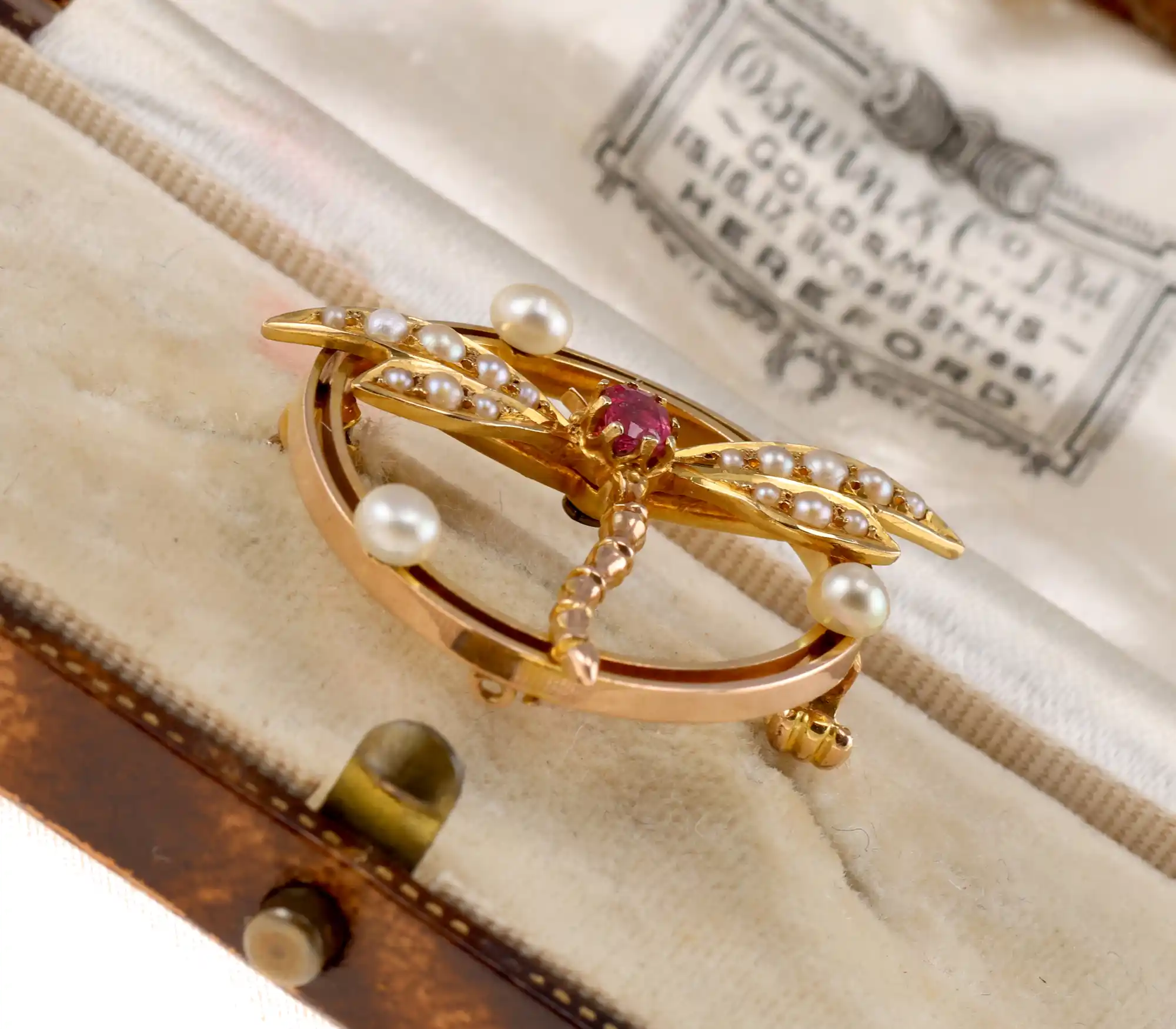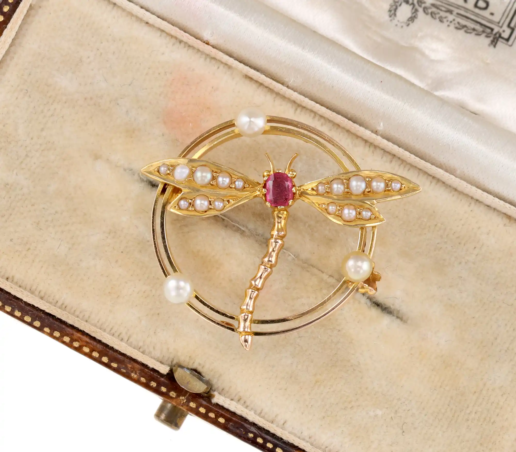 Przedmiotem sprzedaży jest dawna broszka z początku XX wieku. Broszka zdobiona motywem ważki – symbolu transformacji, wolności i subtelnego piękna. Precyzyjnie wykonane skrzydła oraz smukła forma owada odzwierciedlają charakterystyczną dla epoki fascynację naturą i jej detalami. Biżuteria tego rodzaju łączy w sobie dekoracyjność oraz ukryte znaczenie. Broszka zdobina perłami słodko i słonowodnymi oraz czerwonym paciorkiem ze szkła.