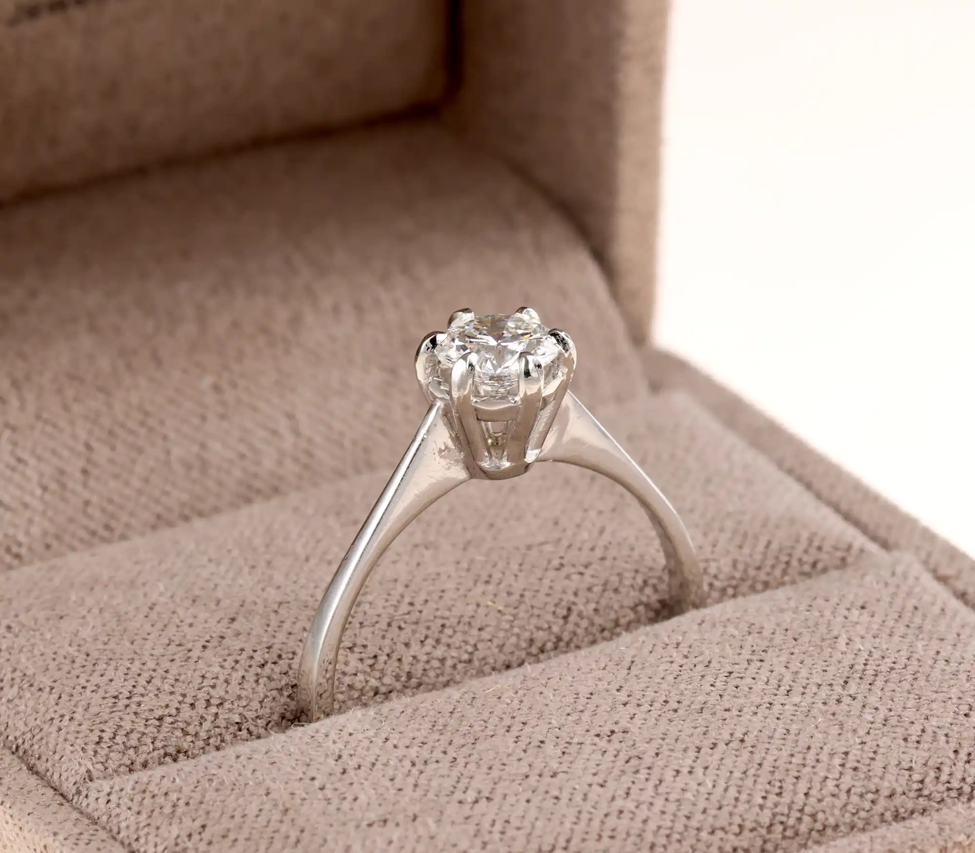Pierścionek zapakujemy w ozdobne firmowe pudełko. Dołączamy dowód zakupu i certyfikat GIA do brylantu.